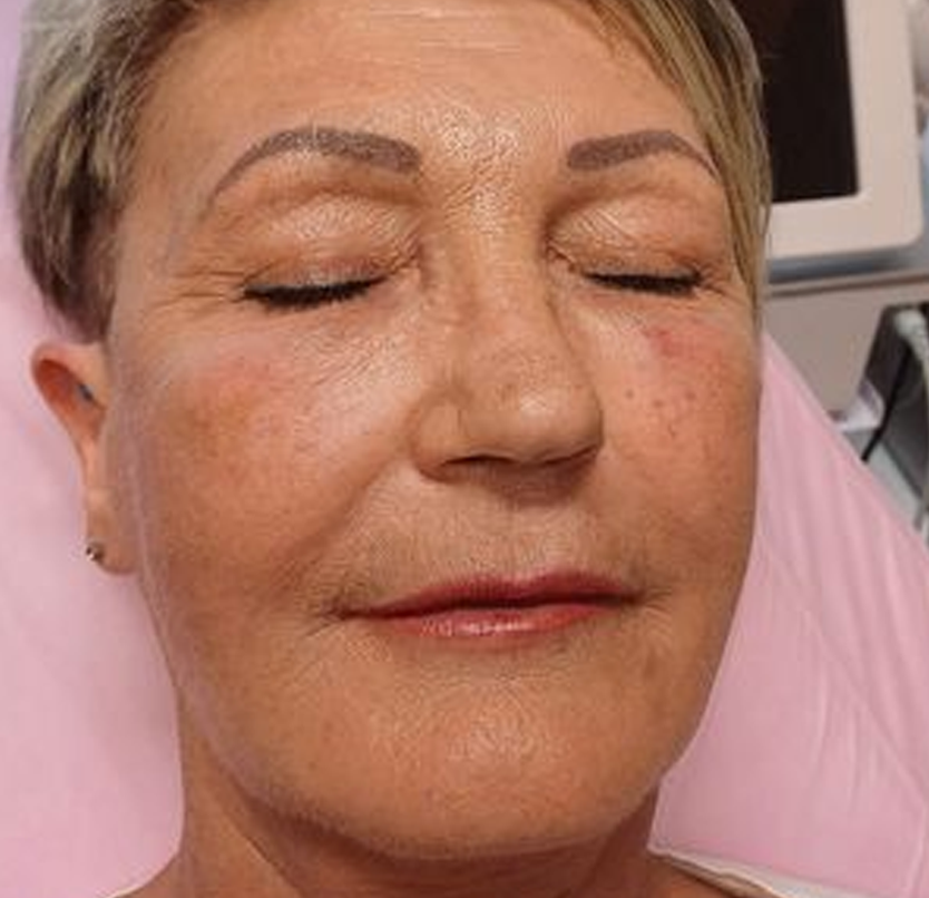 Egy kicsit felfrissítettük az arcát hyaluronsavas töltéssel, alakítottuk az állkontúrját, hogy még szebb legyen.